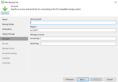 You can direct backups to a specific Myota S3 bucket other than the default one. If you've created and assigned additional credentials using bZa, enter them during backup job setup.